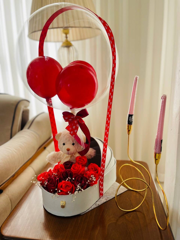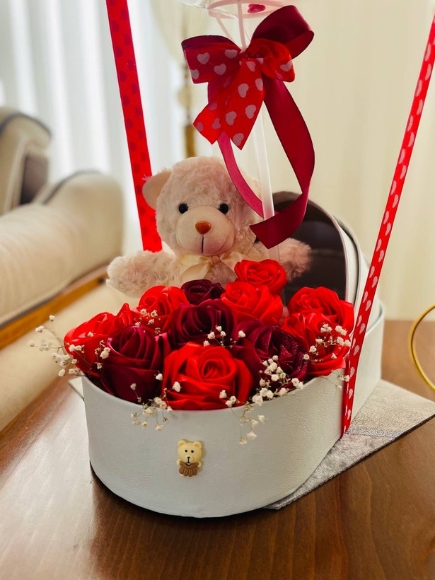 (باکس گهواره ای چرم،گل ربانی جاودان،عروسک تدی خارجی)