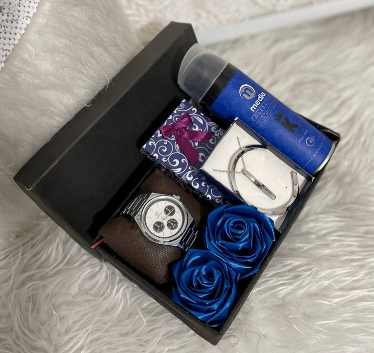 باکس هدیه مردانه پک روز پسر کادو ساعت استیل نقره ای