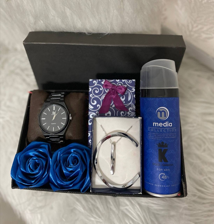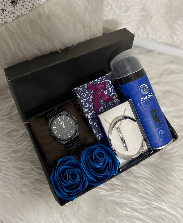 باکس هدیه مردانه پک روز پسر کادو ساعت استیل مشکی