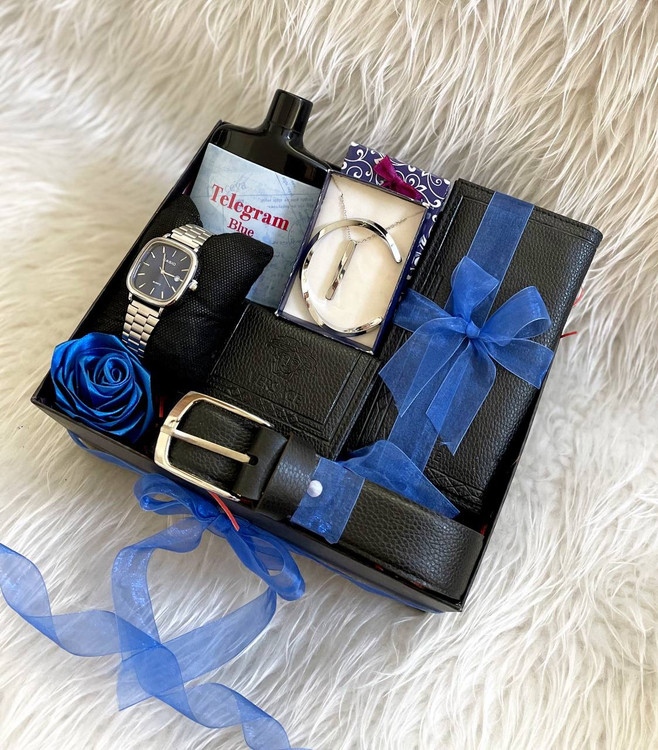 باکس هدیه مردانه پک روز پسر کادو ساعت کاسیو نقره ای