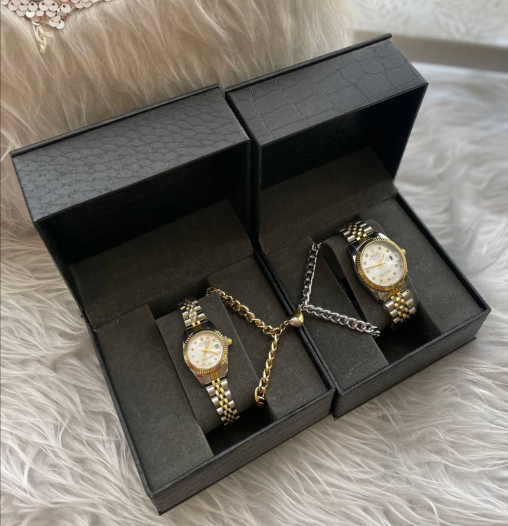 ست ساعت مردانه و زنانه شیک داخل باکس مخملی