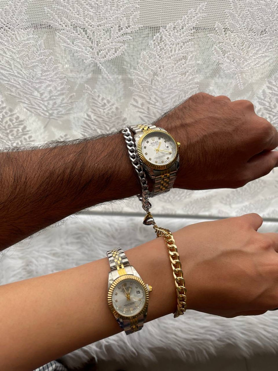 - دو عدد ساعت مچی مردانه و زنانه رولکس با بند فلزی استیل
