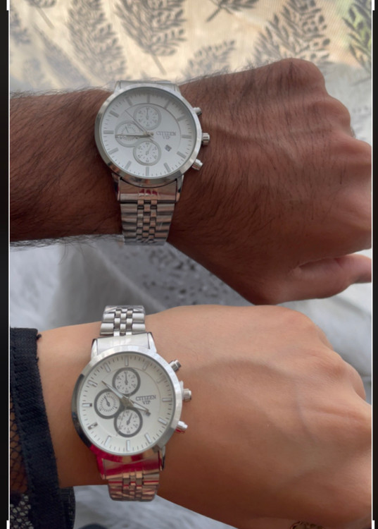 - دو عدد ساعت مچی مردانه و زنانه سیتیزن با بند فلزی استیل