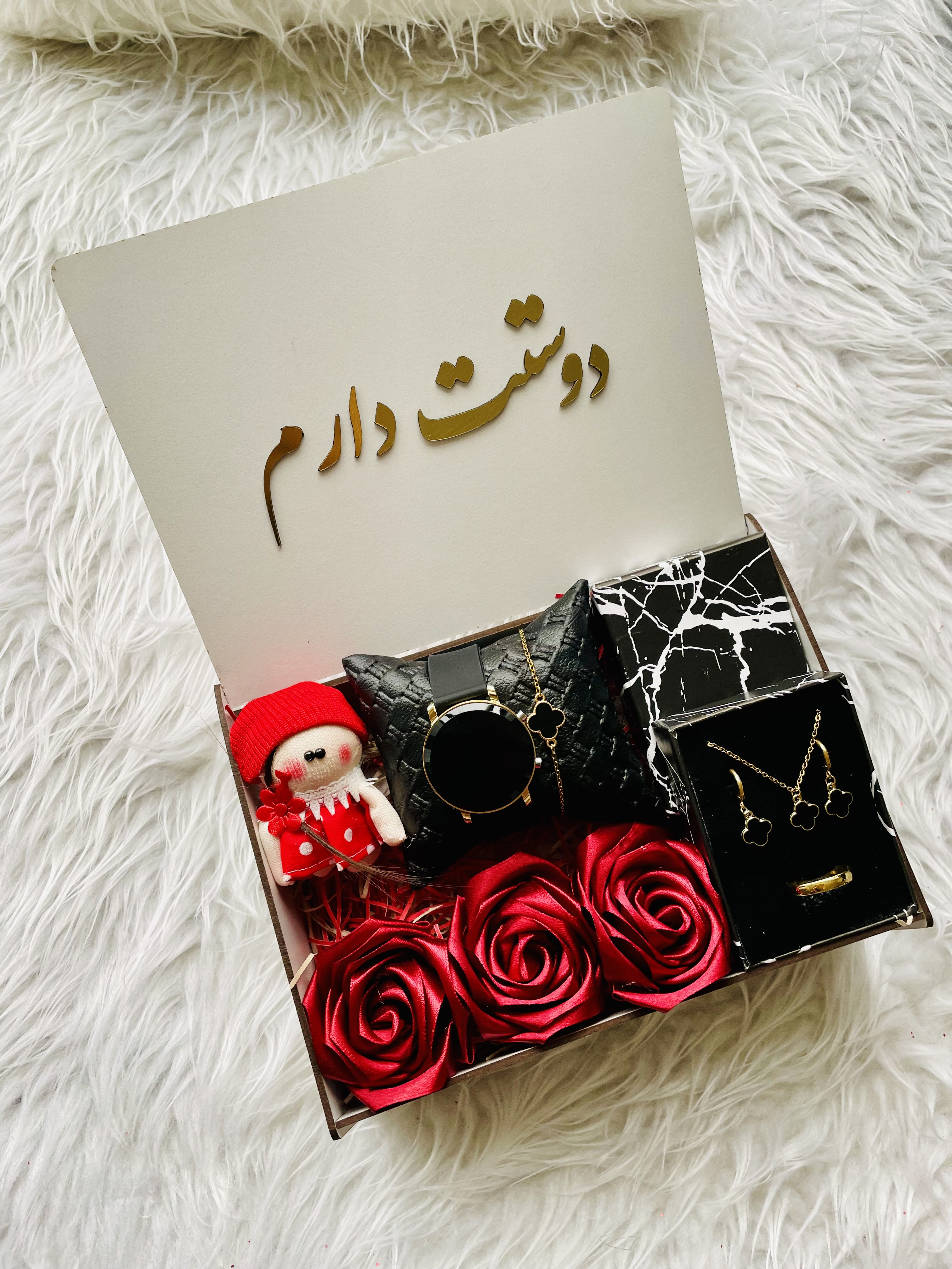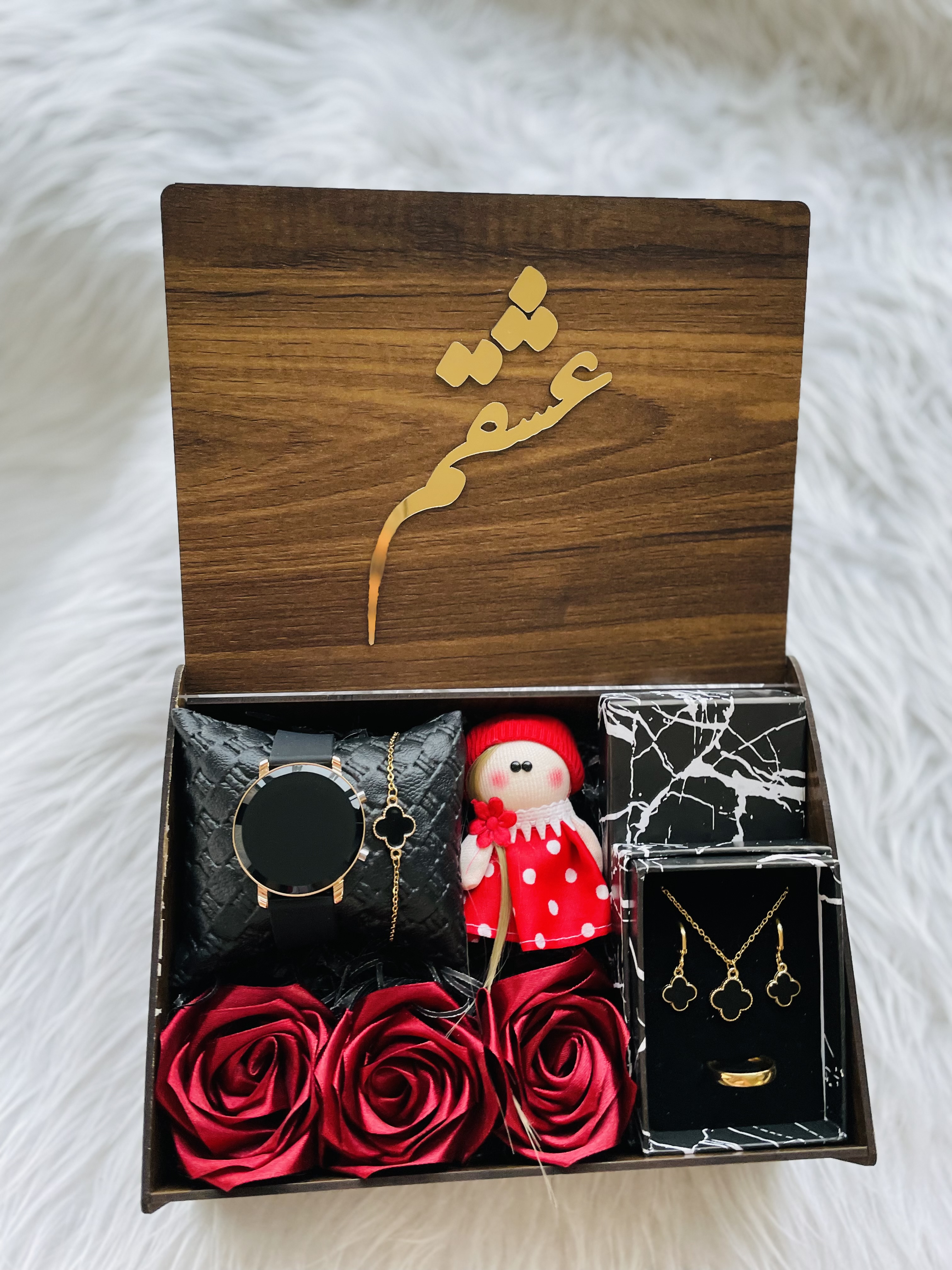 (ارسال رایگان)باکس هدیه چوبی زنانه و دخترانه شیک و خاص/کادو ولنتاین/تولد/زیبا/متن انتخابی