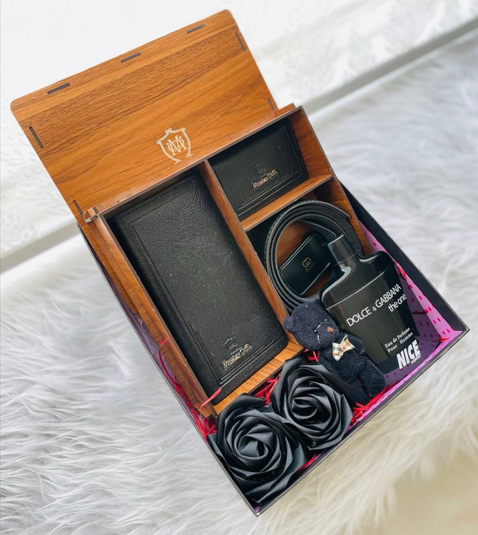 همه در یک باکس چوبی لاکچری با بستهبندی مرتب و آماده هدیه.