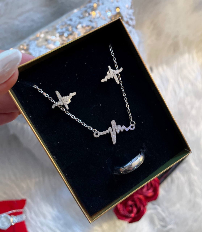 💍 ست زیورآلات طلایی (گردنبند، گوشواره و انگشتر) با طراحی ظریف و خاص
