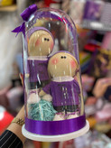 عروسکهای دستساز جفتی داخل حباب شیشهای، با طراحی فانتزی و لباسهای ست بنفش ❤️