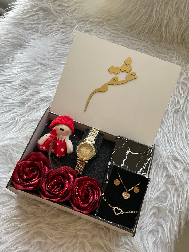 باکس کادویی زنانه لاکچری | ست کامل اکسسوری با ساعت، عروسک و گل رز | انتخابی شیک برای روز زن و روز مادر+ ارسال رایگان