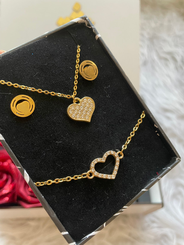 ✅ نیم ست قلبی ظریف و زیبا(گردنبند،گوشواره،حلقه و دستبند)
