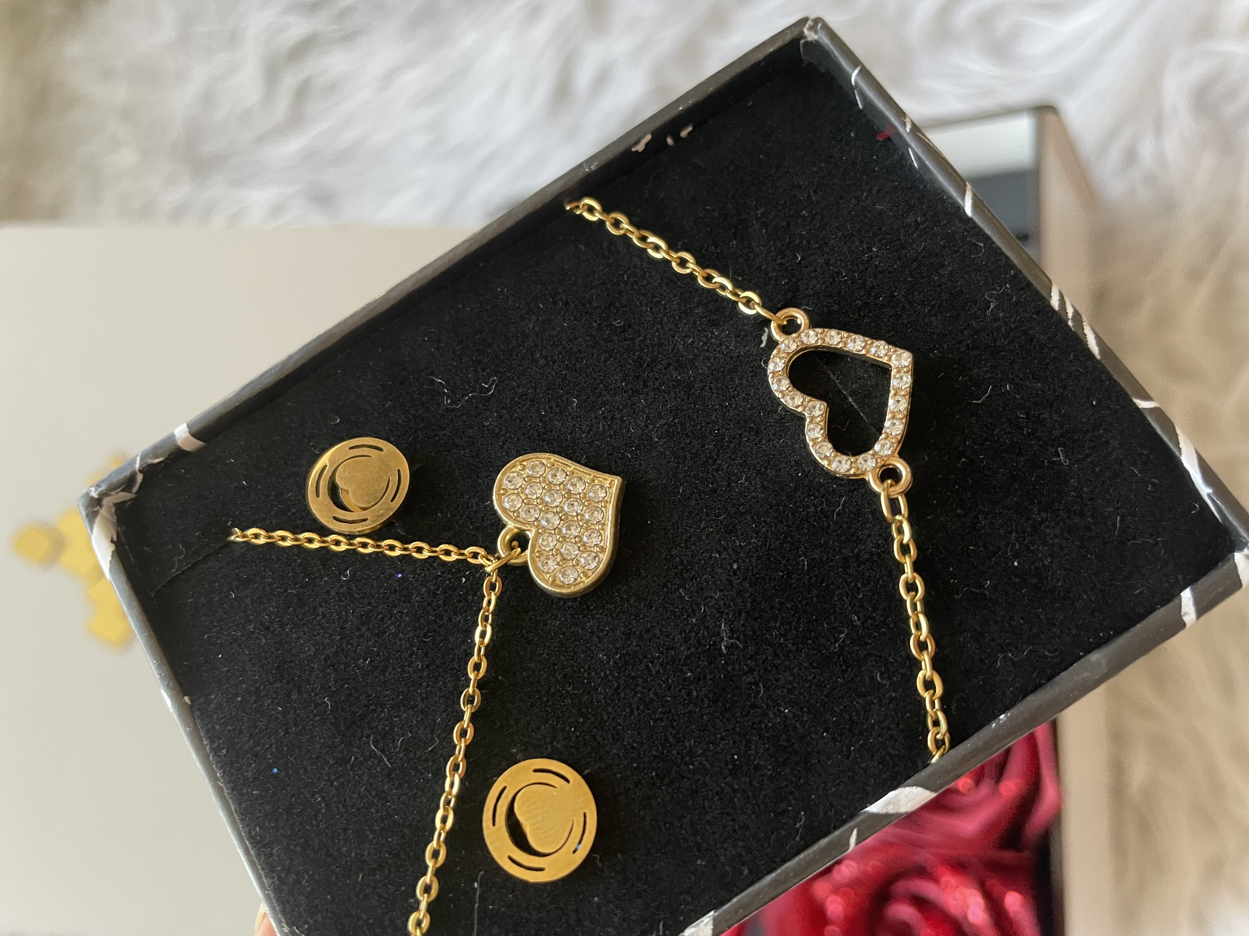 ✅ نیم ست قلبی ظریف و زیبا(گردنبند،گوشواره،حلقه و دستبند)