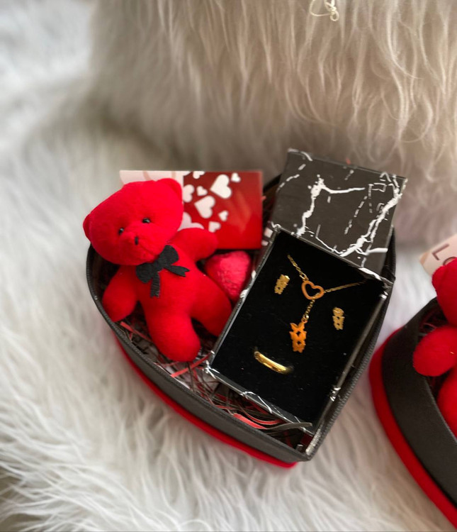 باکس های اقتصادی ولنتاین نیم ست قلب و آویز پروانه به همراه حلقه و عروسک تدی