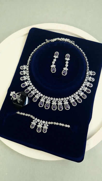این سرویس جواهری شیک و خاص از جنس تیتانیوم با آبکاری باکیفیت ساخته شده و درخشش فوقالعادهای دارد. طراحی ظریف و نگینهای درخشان، جلوهای لوکس به استایل شما میبخشد و مناسب مجالس، عروسی و جشنهاست.