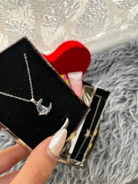 گردنبند استیل ماه و پروانه نقره ای زیبا💕