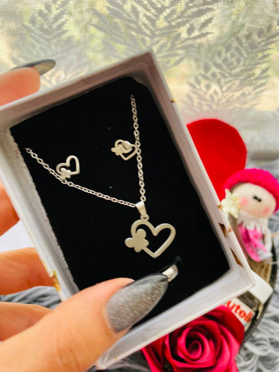 این باکس قلبیشکل با ترکیب گردنبند و انگشتر استیل زیبا و ظریف، خرس قرمز بامزه، رز ربانی و نوتلا ، یه سورپرایز شیرین و خاص برای هر مناسبتیه 🎀