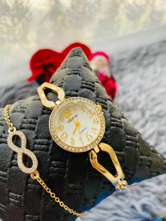 (ارسال رایگان)ست هدیه ساعت و دستبند دخترانه و زنانه زیبا و اقتصادی کادو/تولد/روز دختر ۱۲