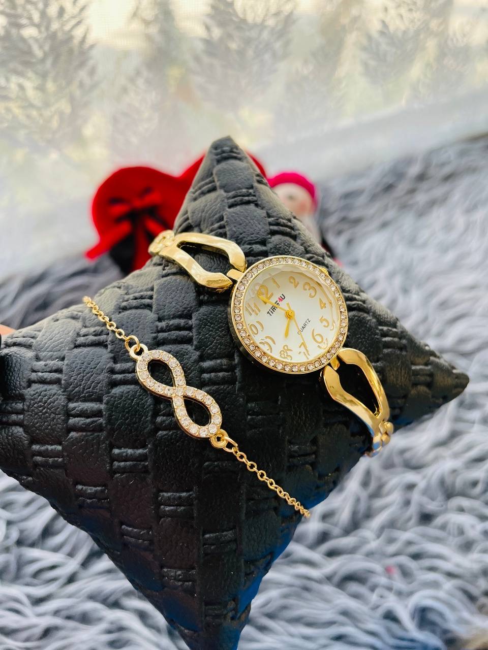 (ارسال رایگان)ست هدیه ساعت و دستبند دخترانه و زنانه زیبا و اقتصادی کادو/تولد/روز دختر ۱۲