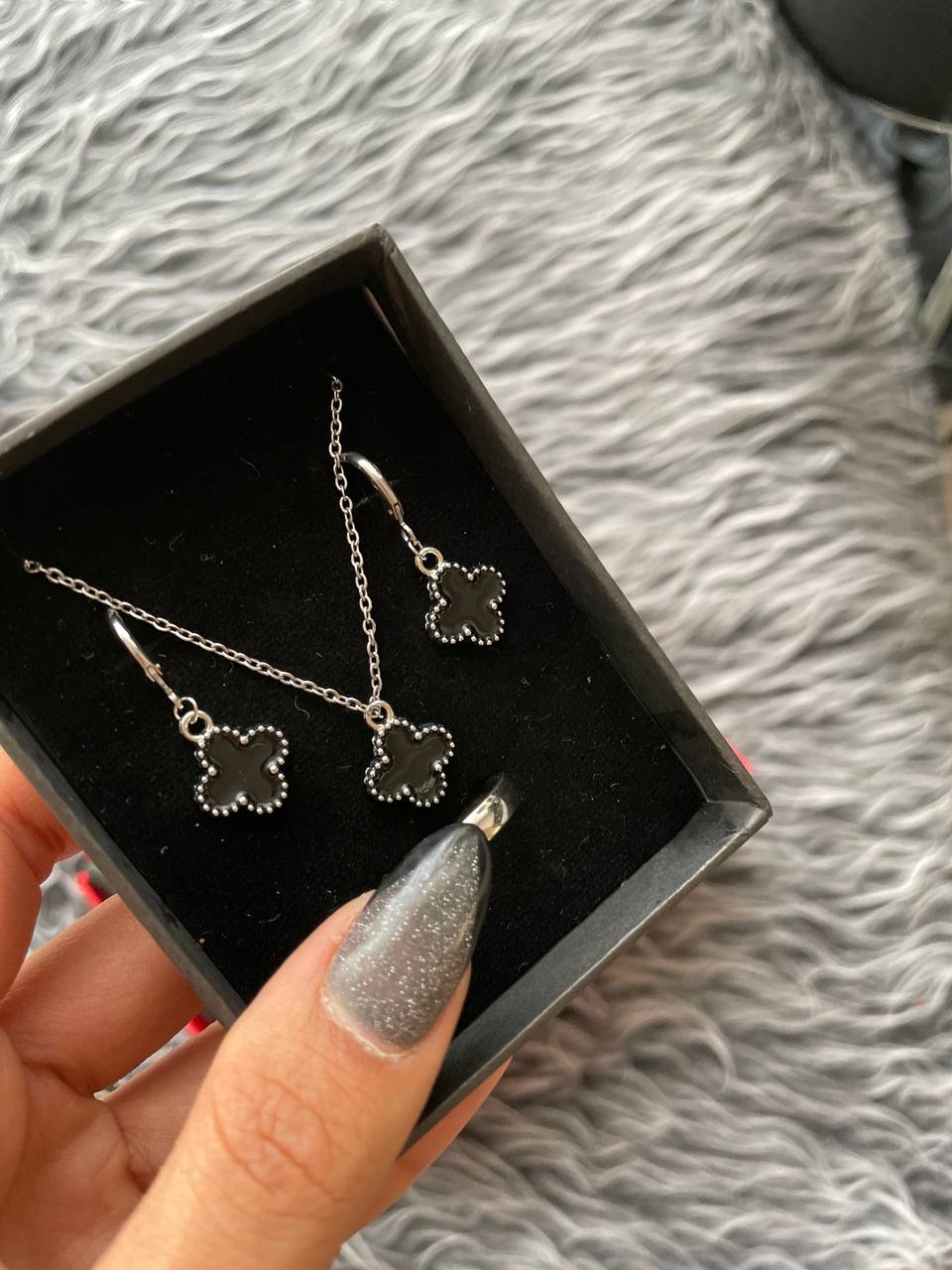 ✅ نیم ست ونکلیف مشکی نقره ای پینترستی شیک و زیبا(گردنبند،گوشواره،حلقه و دستبند)