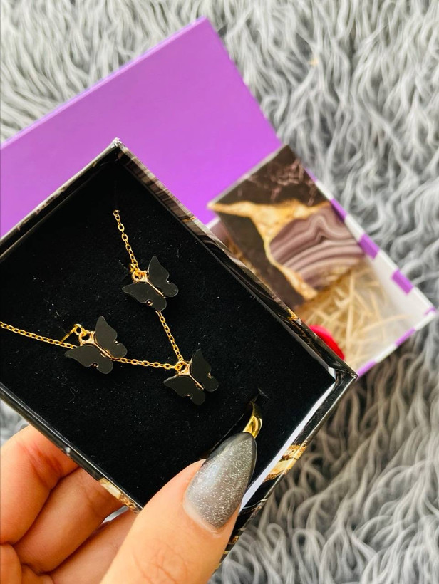 ✅ نیم ست پروانه مشکی پینترستی شیک و زیبا(گردنبند،گوشواره،حلقه و دستبند)