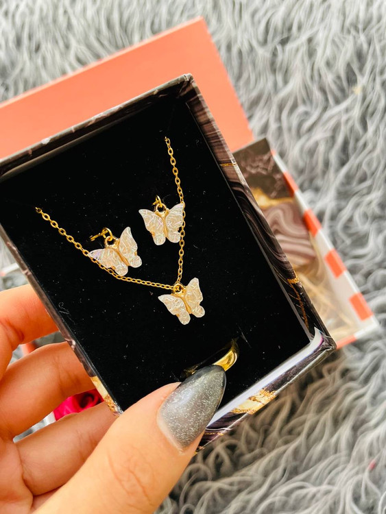 ✅ نیم ست پروانه سفید اکلیلی پینترستی شیک و زیبا(گردنبند،گوشواره،حلقه و دستبند)
