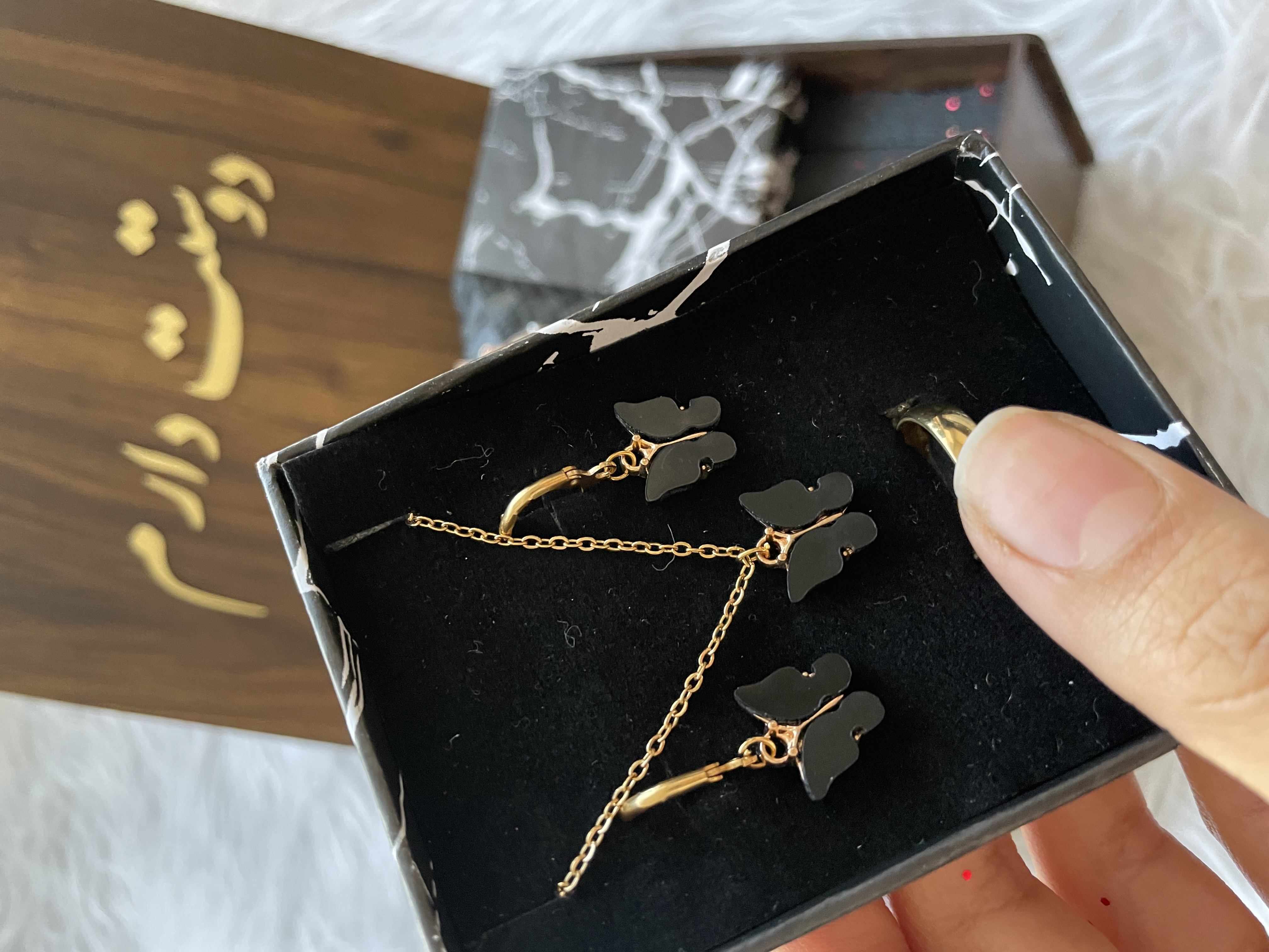 ✅ نیم ست پروانه مشکی پینترستی شیک و زیبا(گردنبند،گوشواره،حلقه و دستبند)