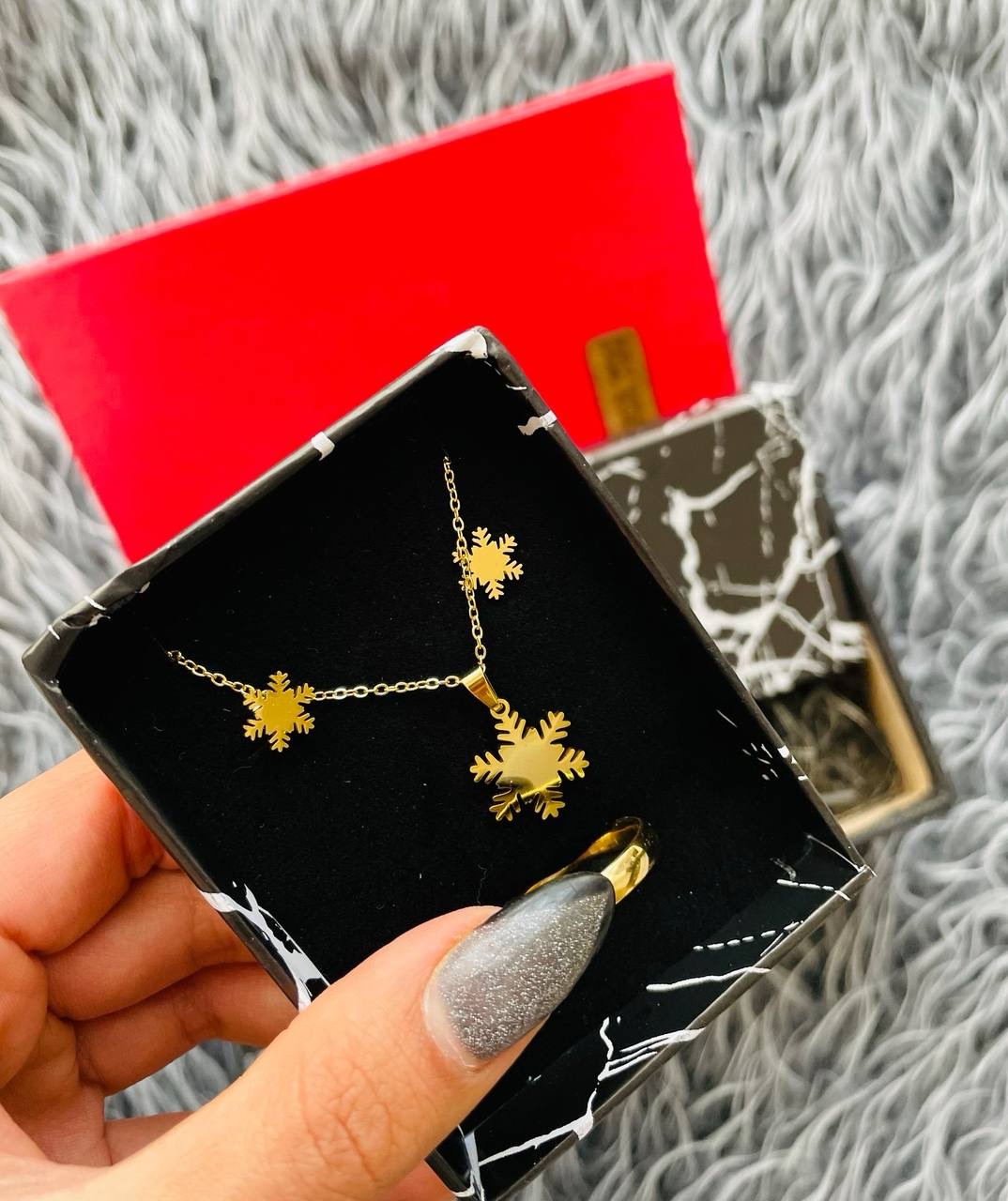 ✨ ست گردنبند و گوشواره و حلقه طلایی ظریف و زیبا