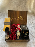 (ارسال رایگان) باکس هدیه زنانه و دخترانه شیک و خاص/ساعت/ادکلن/نیم ست/باکس چوبی
