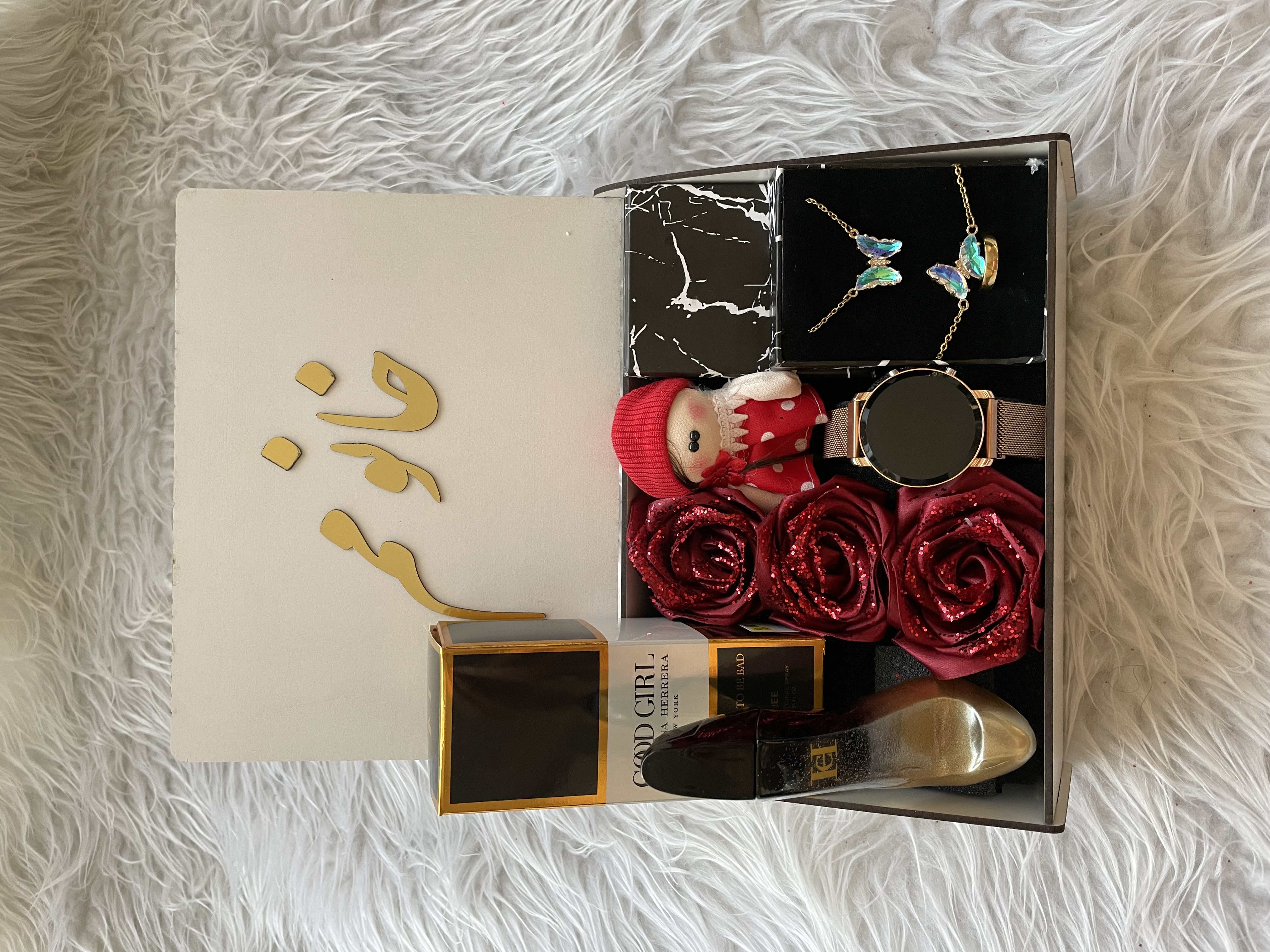 (ارسال رایگان)باکس چوبی هدیه زنانه و دخترانه شیک ساعت/ادکلن/روز زن و مادر