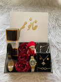 (ارسال رایگان)باکس چوبی هدیه زنانه شیک و لاکچری/ادکلن/ساعت سیتیزن/نیم ست برفی زیبا