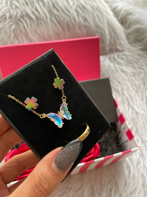 ✅ نیم ست پروانه تی سوارسکی شیک و زیبا(گردنبند،گوشواره ،حلقه و دستبند)