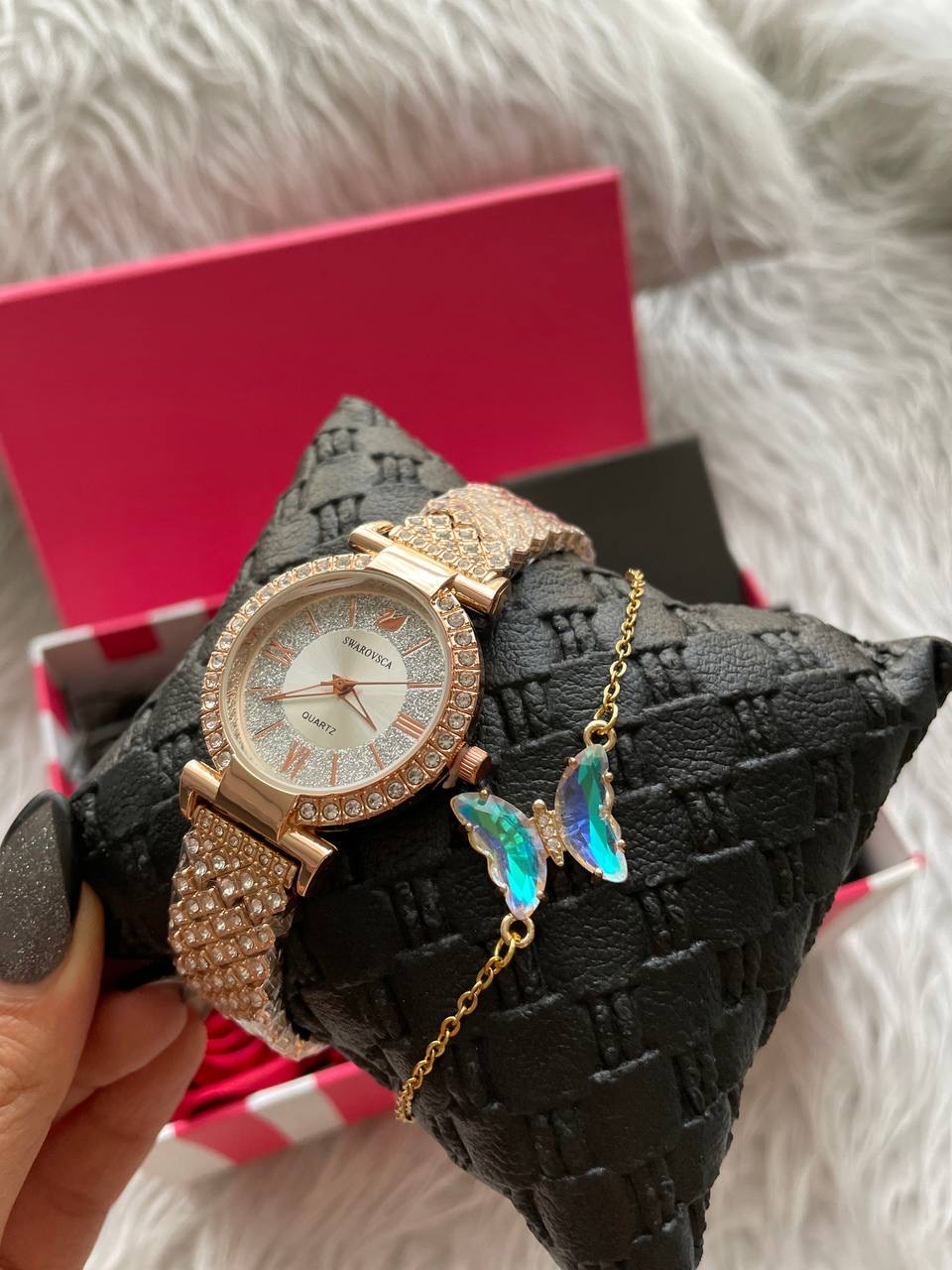 ✅ نیم ست پروانه تی سوارسکی شیک و زیبا(گردنبند،گوشواره ،حلقه و دستبند)