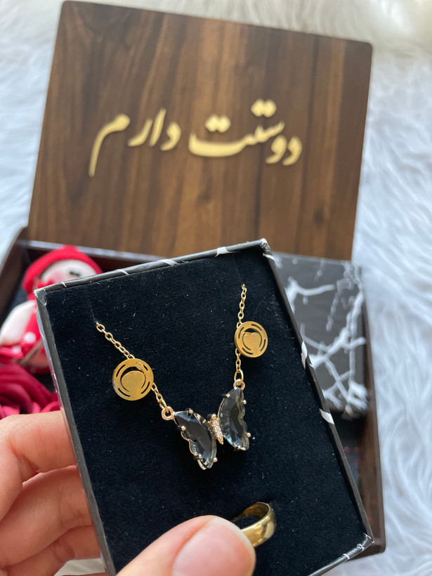 ✅ نیم ست پروانه ای سوارسکی شیک و زیبا(گردنبند،گوشواره ،حلقه و دستبند)