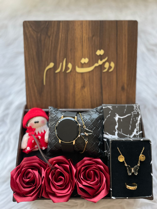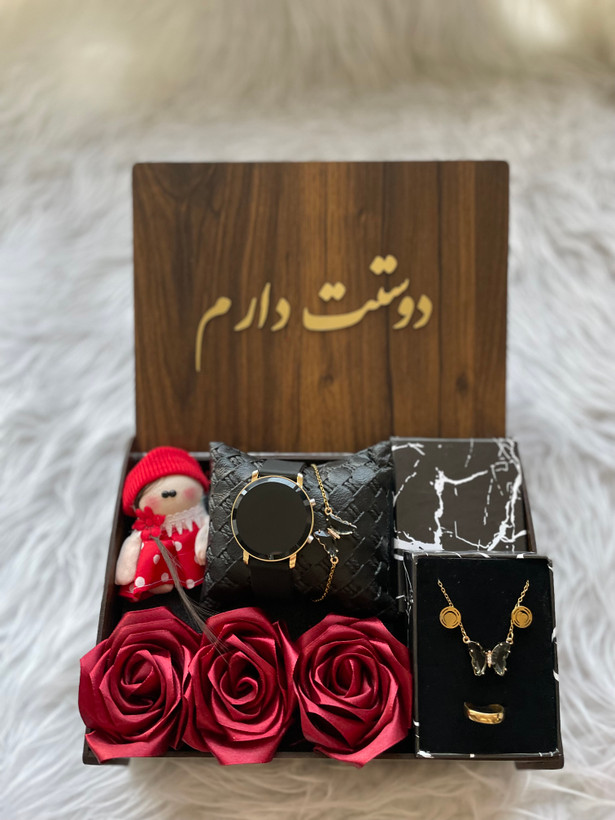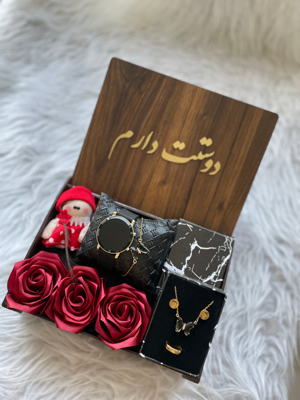 (ارسال رایگان)باکس هدیه زنانه شیک و چوبی– پک کادویی زنانه اسپرت و مجلسی مناسب روز زن ۹۰