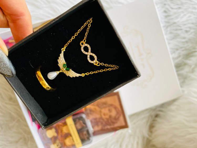 ✅ گردنبند دو لاین بال فرشته و بینهایت زیبا به همراه حلقه