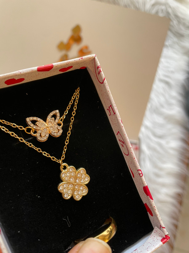 ✅ گردنبند دو لاین پروانه زیبا به همراه حلقه