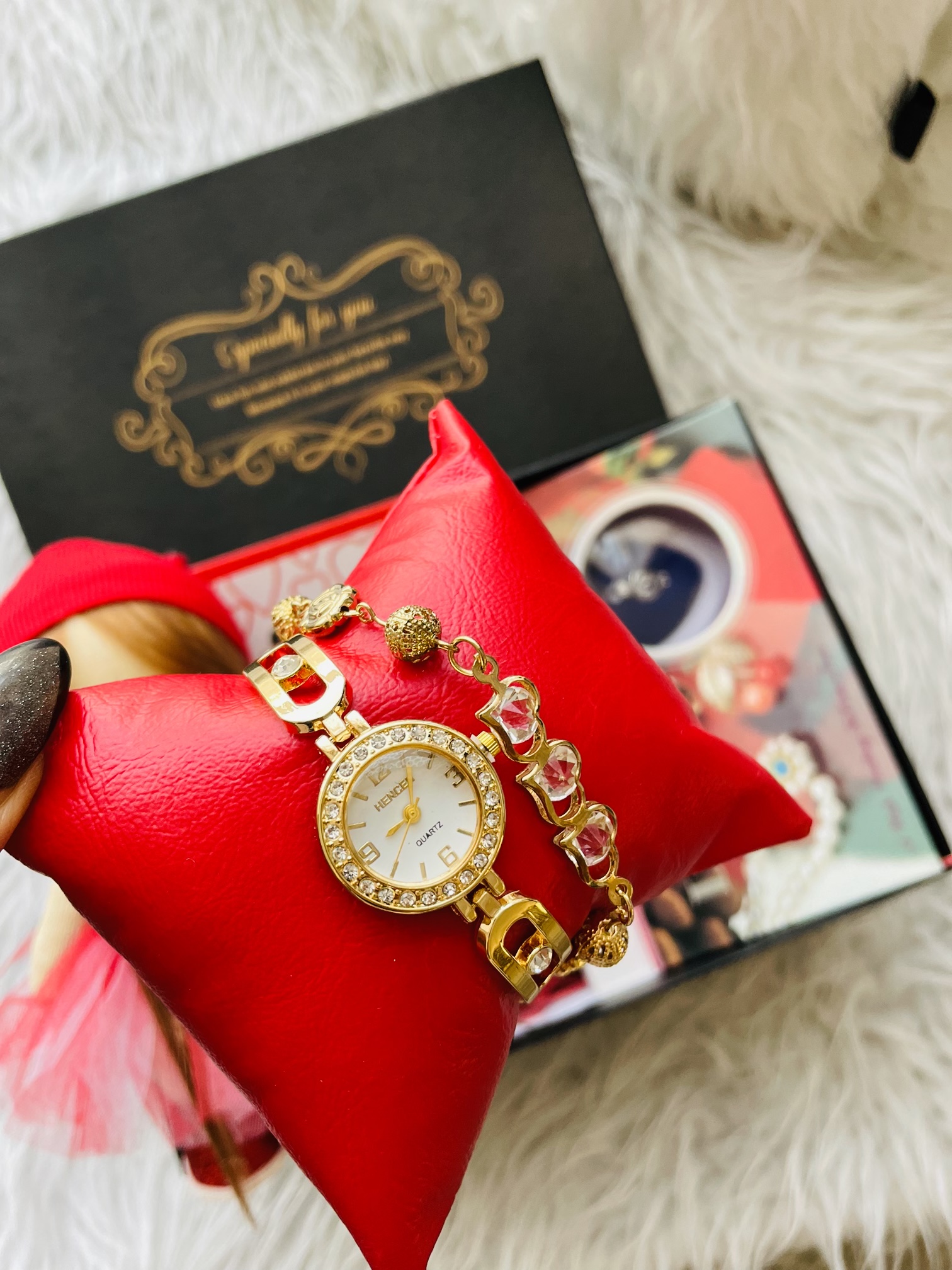 ✅ ست ساعت زنانه و دخترانه نگینی شیک و دستبند)