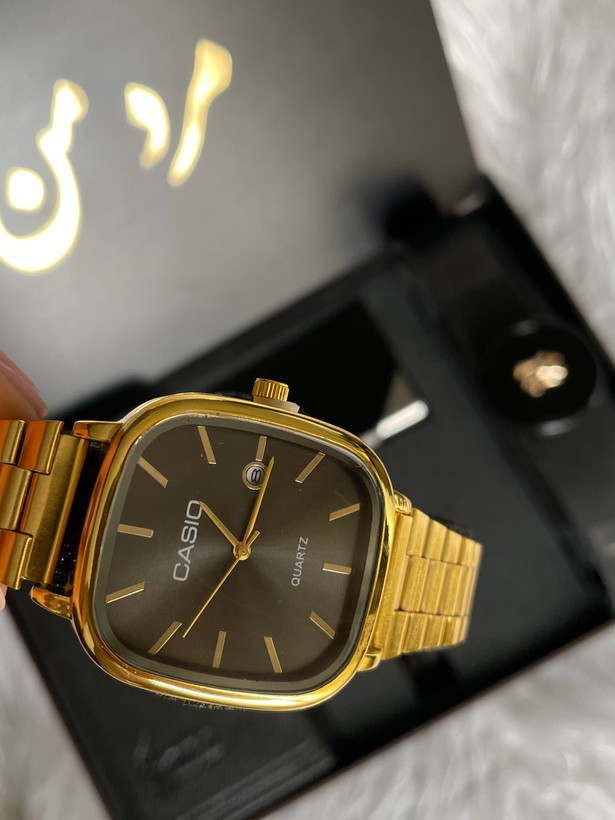 پک هدیه مردانه شیک| ساعت مچی کاسیو طلایی+ کیف + کمربند + جاکارتی | مناسب تولد و روز مرد|انتخاب متن ۰۴