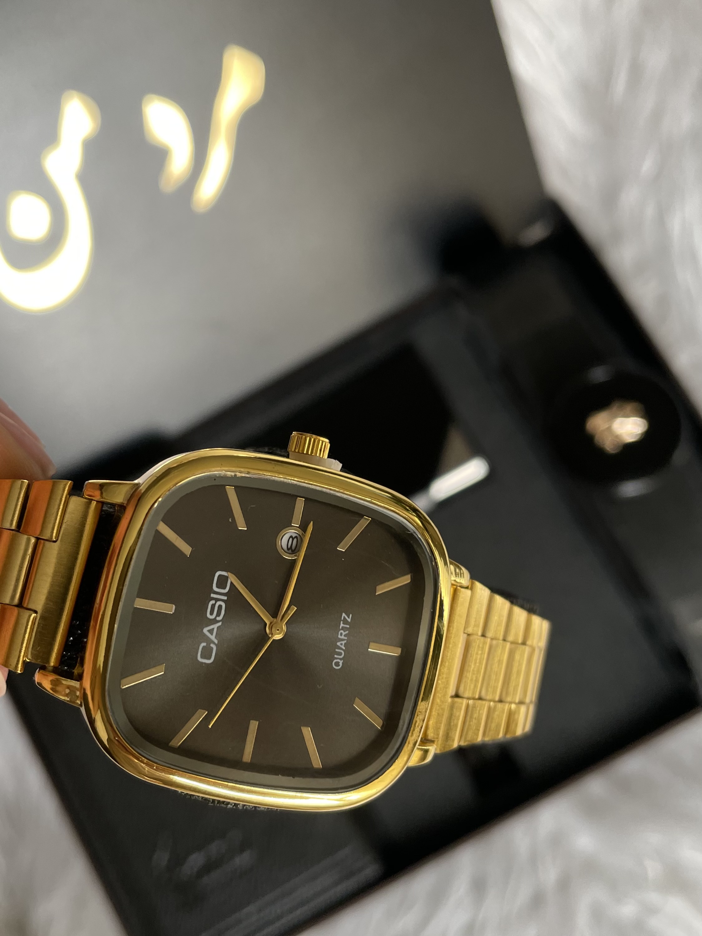 پک هدیه مردانه شیک| ساعت مچی کاسیو طلایی+ کیف + کمربند + جاکارتی | مناسب تولد و روز مرد|انتخاب متن ۰۴