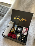 (ارسال رایگان) باکس هدیه زنانه و دخترانه لاکچری/تراول ماگ|ساعت |ست برفی|ادکلن|کمربند|باکس چوبی با متن انتخابی