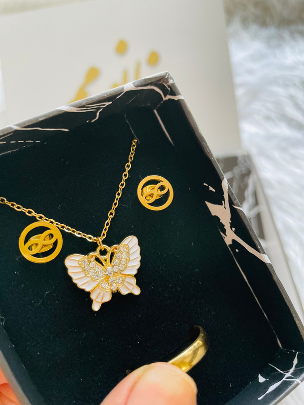 ✅ نیم ست استیل شیک و زیبا پروانه ای (گردنبند،گوشواره،دستبند،حلقه)
