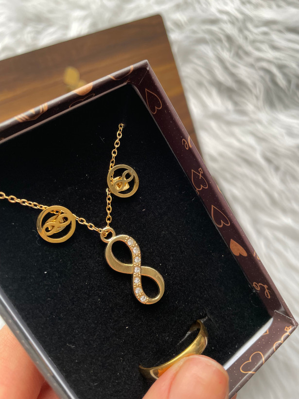 ✅ نیم ست استیل شیک و زیبا بینهایت (گردنبند،گوشواره،دستبند،حلقه)