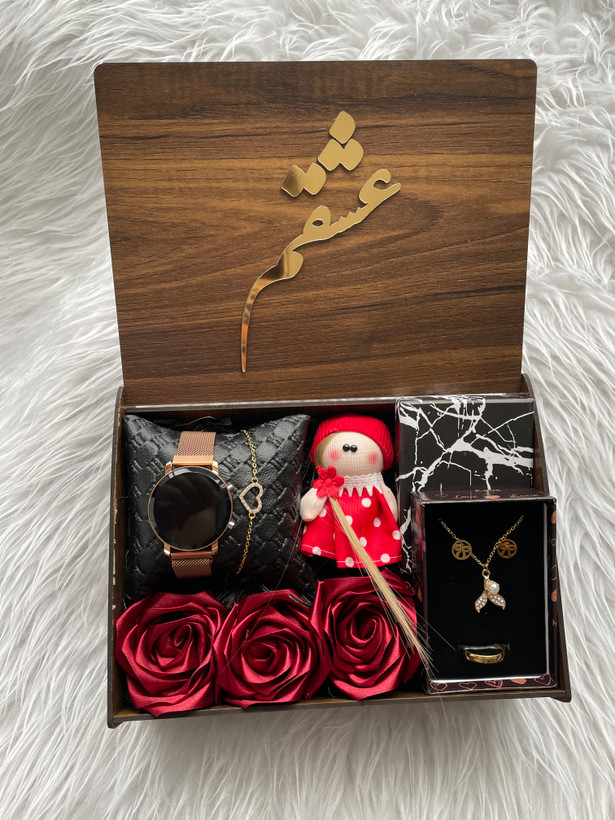 (ارسال رایگان) باکس هدیه شیک زنانه (ساعت دیجیتال،گردنبند وال )پک کادو ولنتاین ۴