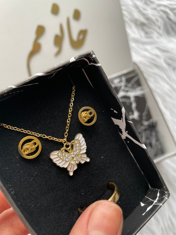 ✅ نیم ست استیل شیک و زیبا قلبی (گردنبند،گوشواره،دستبند،حلقه)