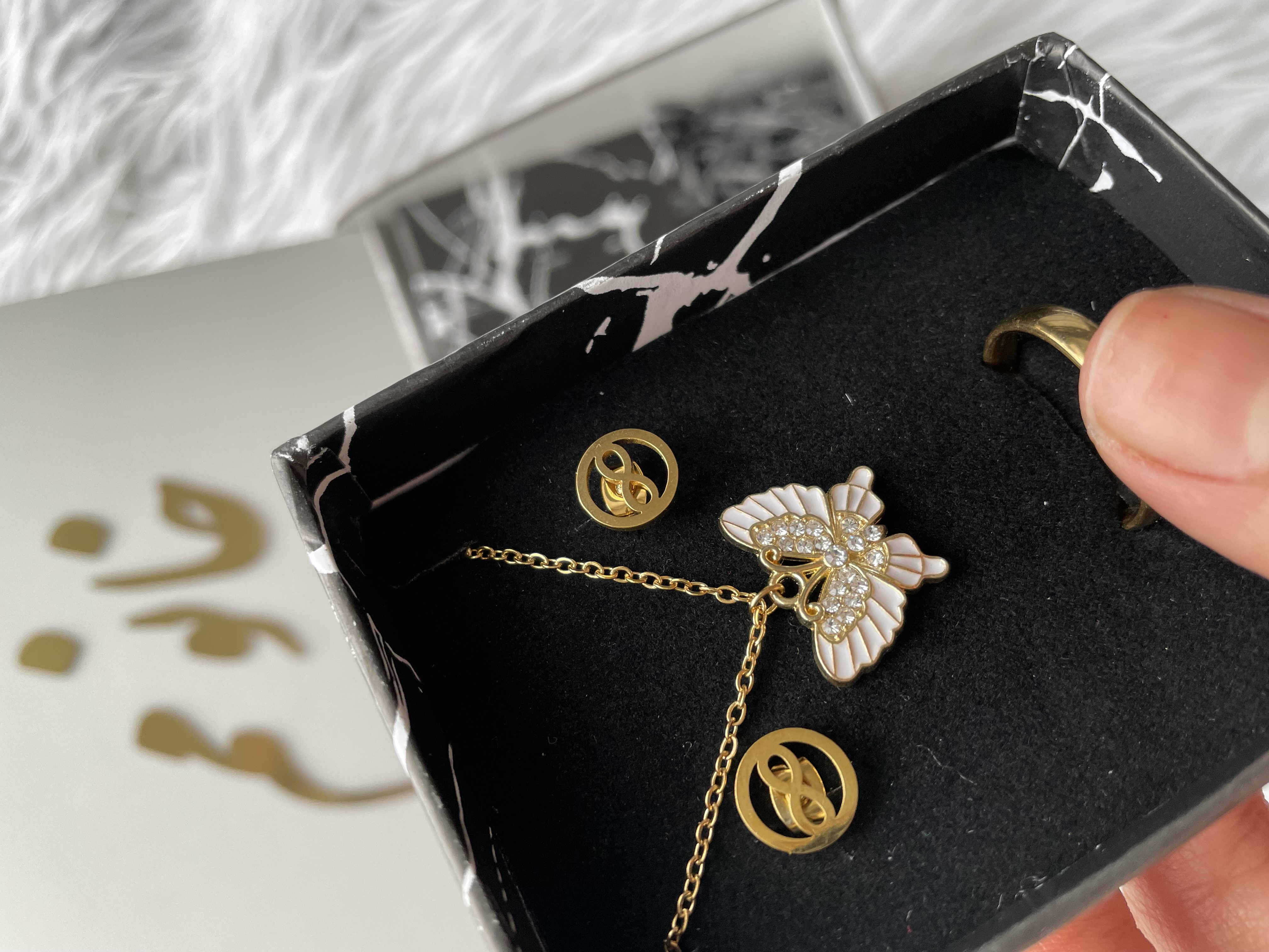 ✅ نیم ست استیل شیک و زیبا قلبی (گردنبند،گوشواره،دستبند،حلقه)