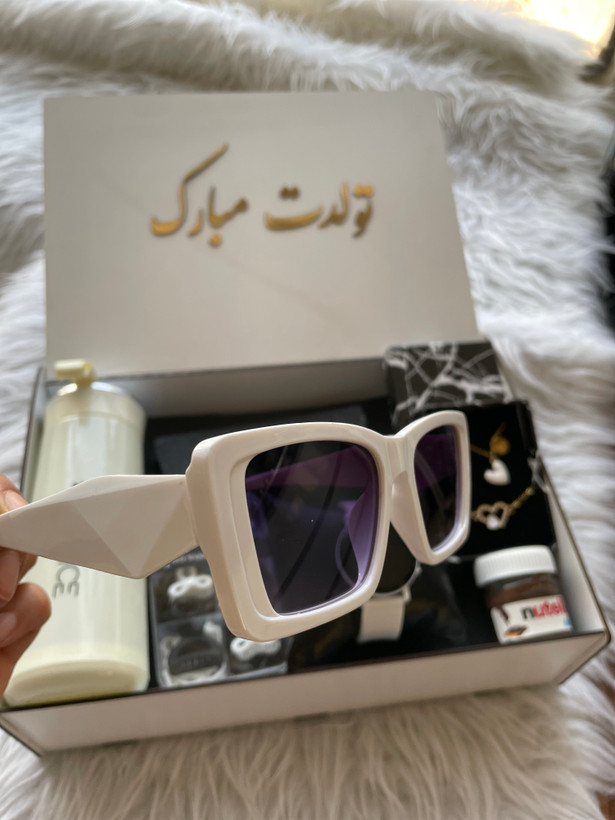 (ارسال رایگان) باکس هدیه زنانه و دخترانه لاکچری/سایه|عینک |نیم ست |رژ لب|نوتلا|باکس چوبی کادو ولنتاین ۱۴