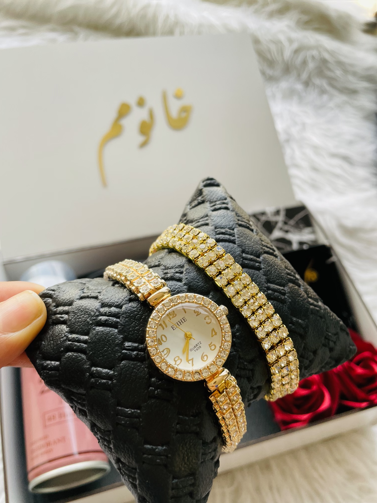 (ارسال رایگان) باکس هدیه زنانه و دخترانه لاکچری/ساعت و دستبند|اسپری |عینک|نیم ست||باکس چوبی کادو ولنتاین ۱۶