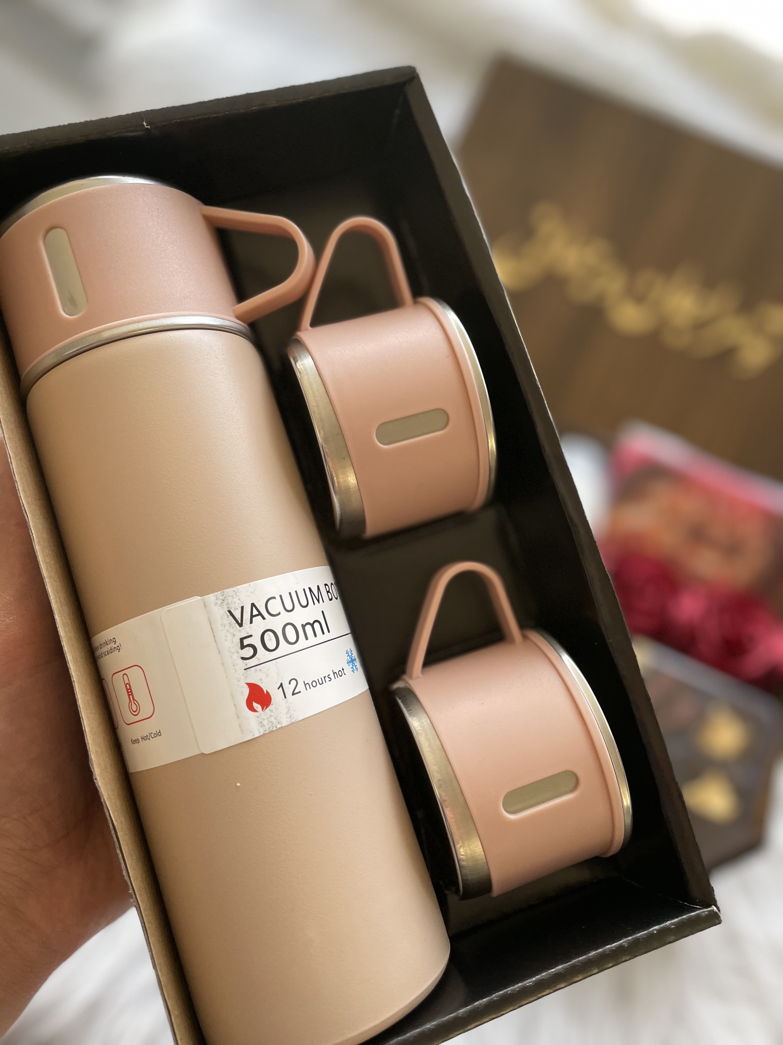 (ارسال رایگان) باکس هدیه زنانه و دخترانه لاکچری/فلاسک مسافرتی |ادکلن |پالت سایه |باکس چوبی کادو ولنتاین ۲۰