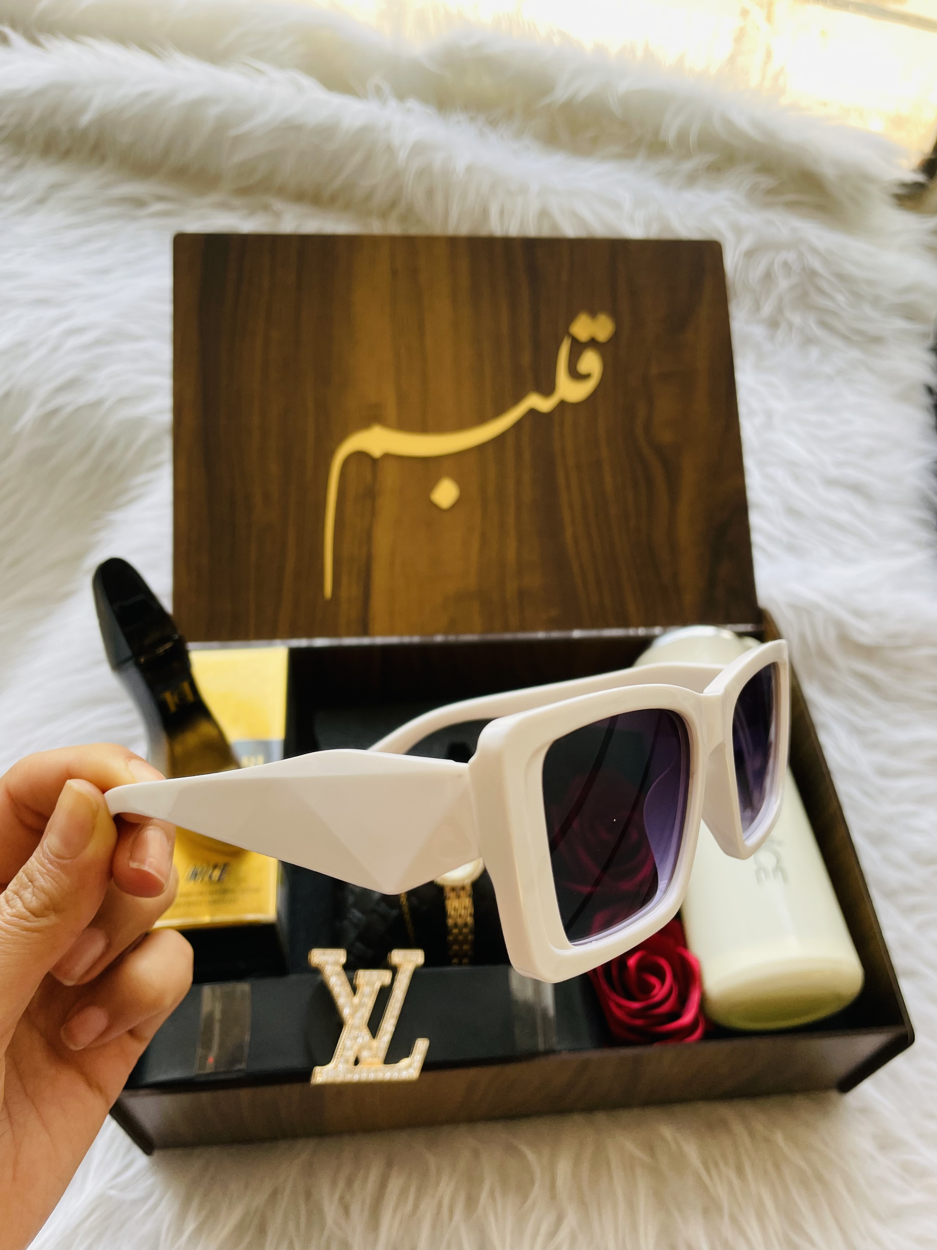 (ارسال رایگان) باکس هدیه زنانه و دخترانه لاکچری/ساعت |ادکلن |عینک|کمربند|بطری|باکس چوبی کادو ولنتاین ۲۱