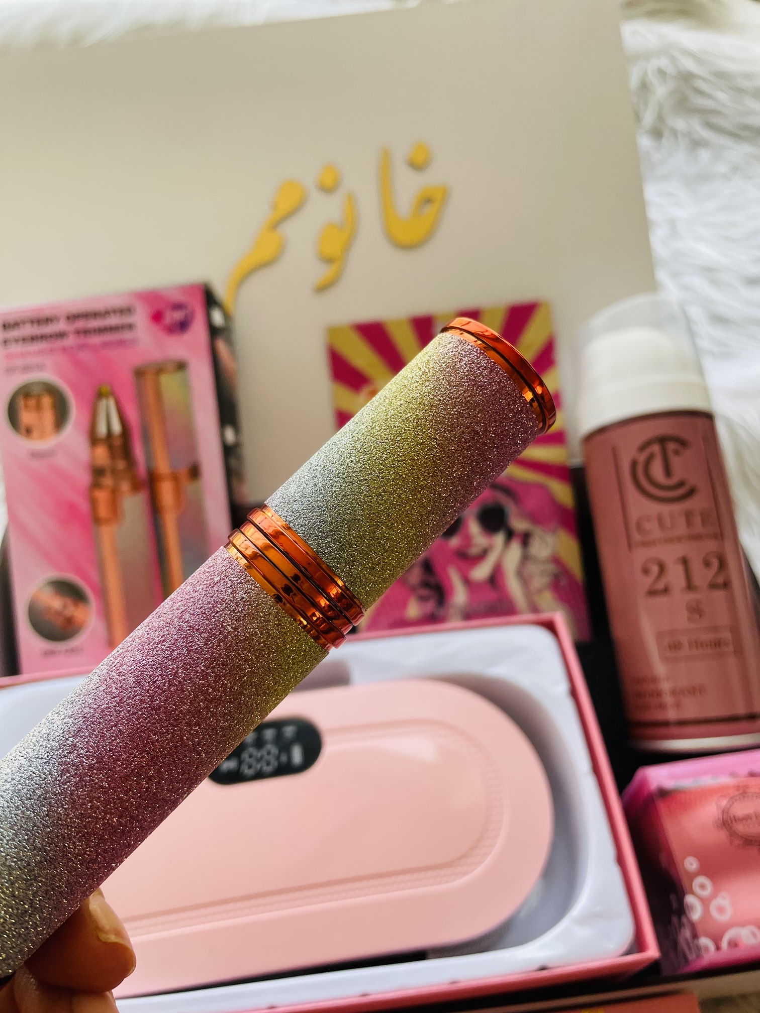 در کنار دستگاه، محصولات مراقبتی پوستی قرار گرفتهاند تا این پک به یک هدیه کامل، دخترانه و کاملاً کاربردی تبدیل شود.