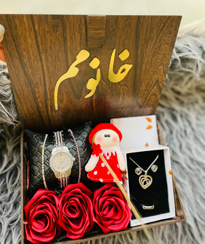 (ارسال رایگان) پک هدیه زنانه و دخترانه ساعت نگینی،نیم ست قلبی نقره ای شیک ۳
