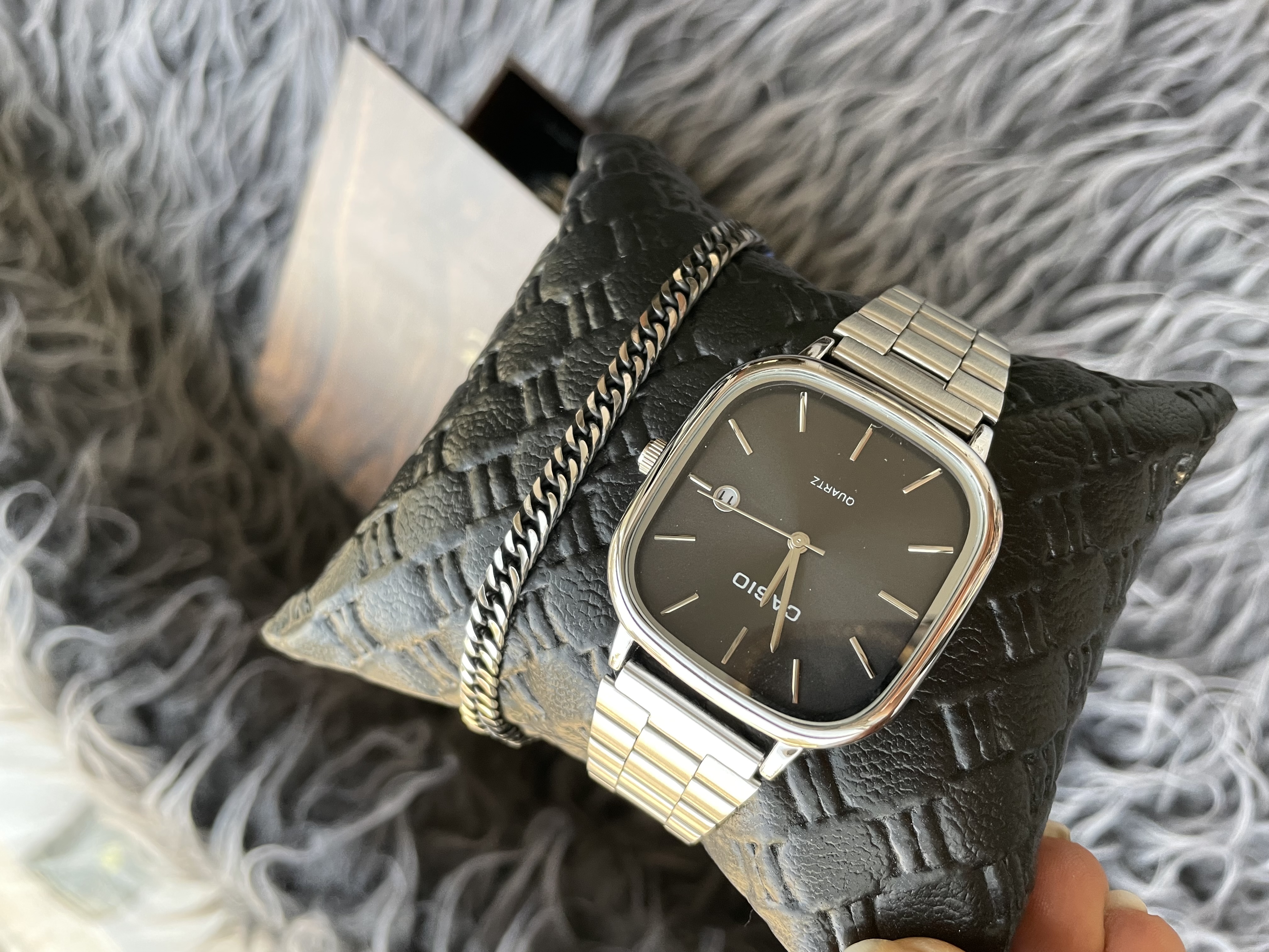(ارسال رایگان) هدیه لاکچری مردانه کادو تولد ساعت کاسیو و ست کارتیر نقره ای جذاب ۱۰